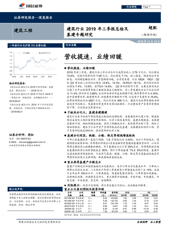 【国信证券】【20191114】建筑行业2019年三季报总结及基建专题研究:营收提速,业绩回暖-35页