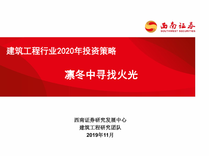 【西南证券】【20191126】建筑工程行业2020年投资策略:凛冬中寻找火光-25页