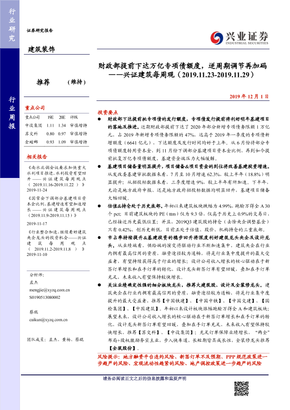 【兴业证券】【20191201】财政部提前下达万亿专项债额度,逆周期调节再加码-25页