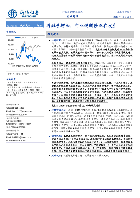 【海通证券】【20191208】建筑工程行业周报:再融资增加,行业逻辑修正在发生-6页