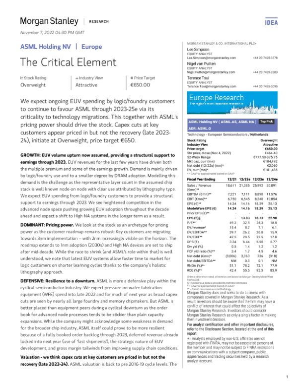 【Morgan Stanley】【20221107】ASML Holding NV The Critical Element-23页