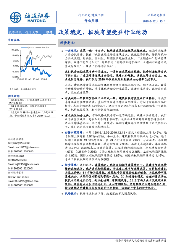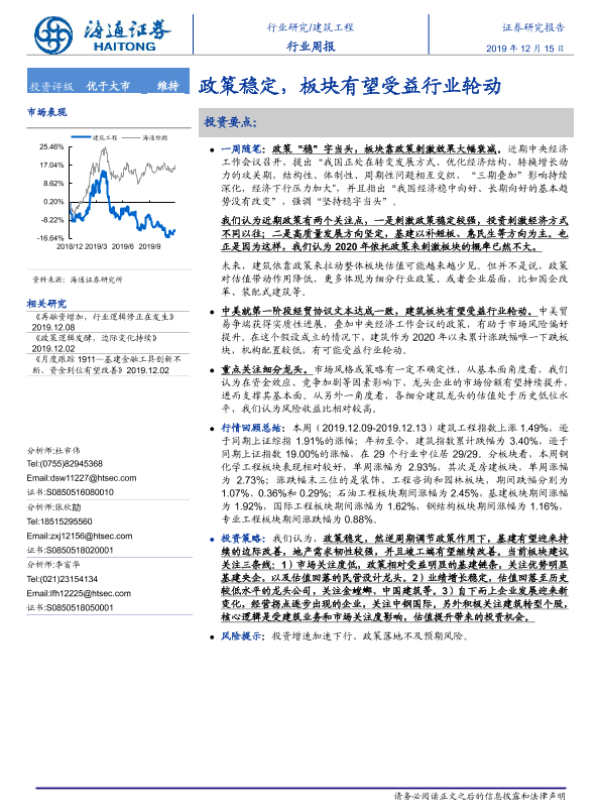 【海通证券】【20191215】建筑工程行业周报:政策稳定,板块有望受益行业轮动-7页