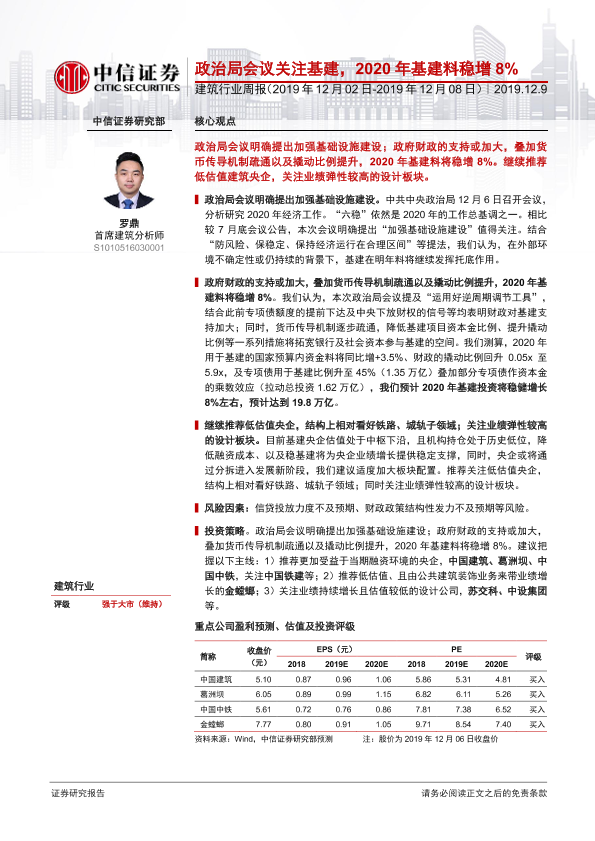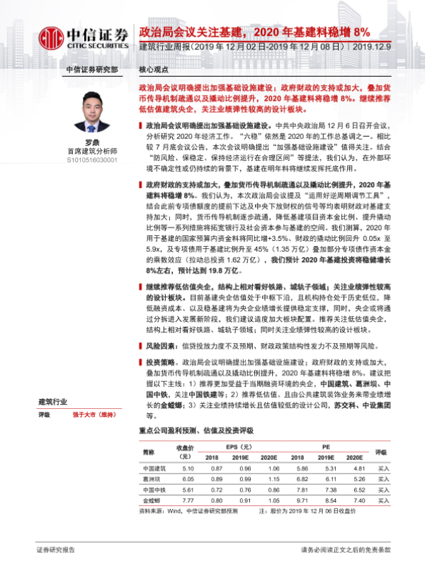 【中信证券】【20191209】建筑行业周报:政治局会议关注基建,2020年基建料稳增8%-34页