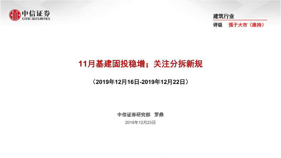 【中信证券】【20191223】11月基建固投稳增;关注分拆新规-52页
