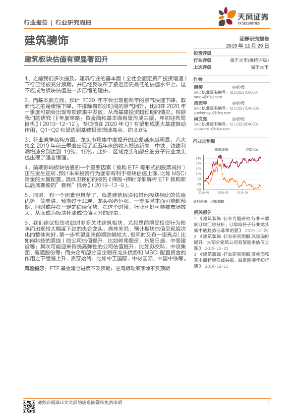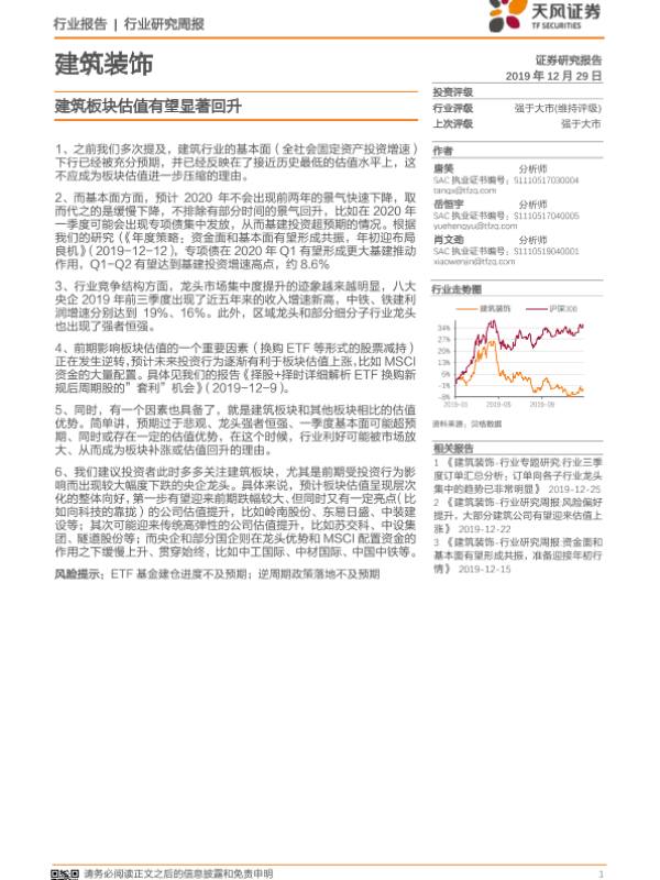 【天风证券】【20191229】建筑装饰行业研究周报:建筑板块估值有望显著回升-2页