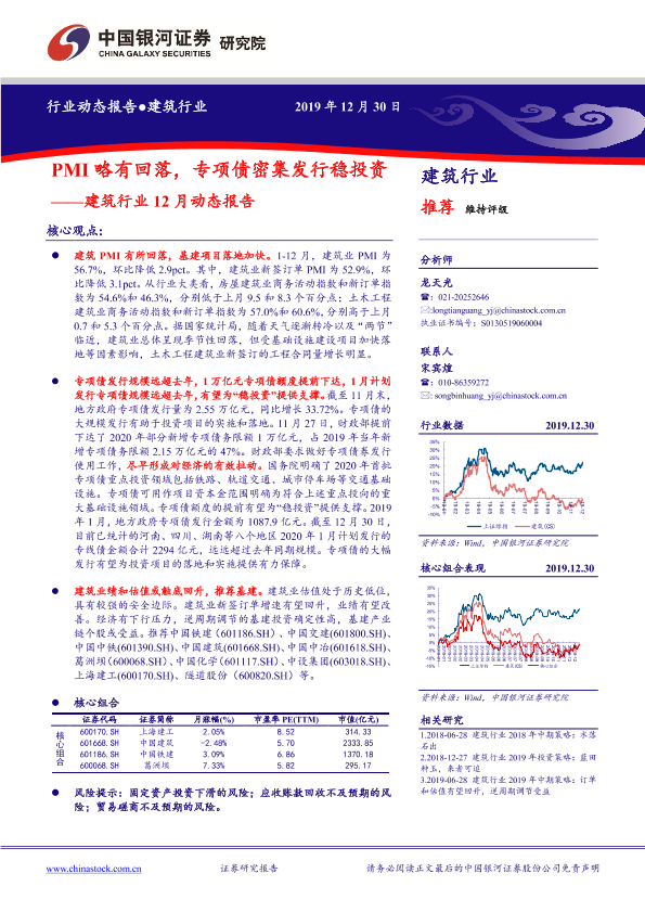 【银河证券】【20191230】建筑行业12月动态报告:PMI略有回落,专项债密集发行稳投资-22页