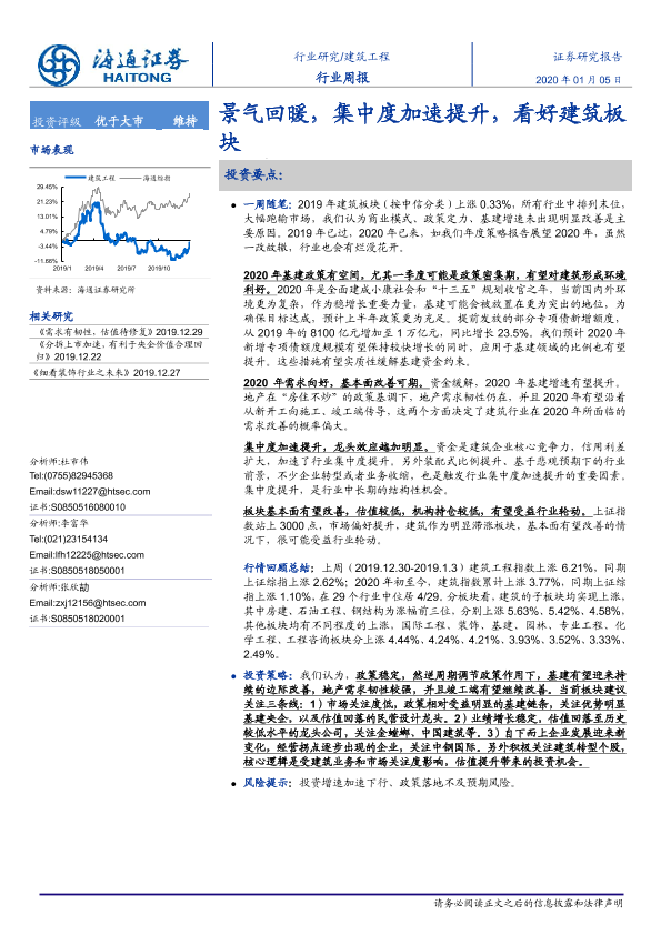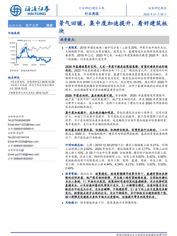 【海通证券】【20200105】建筑工程行业周报:景气回暖,集中度加速提升,看好建筑板块-6页