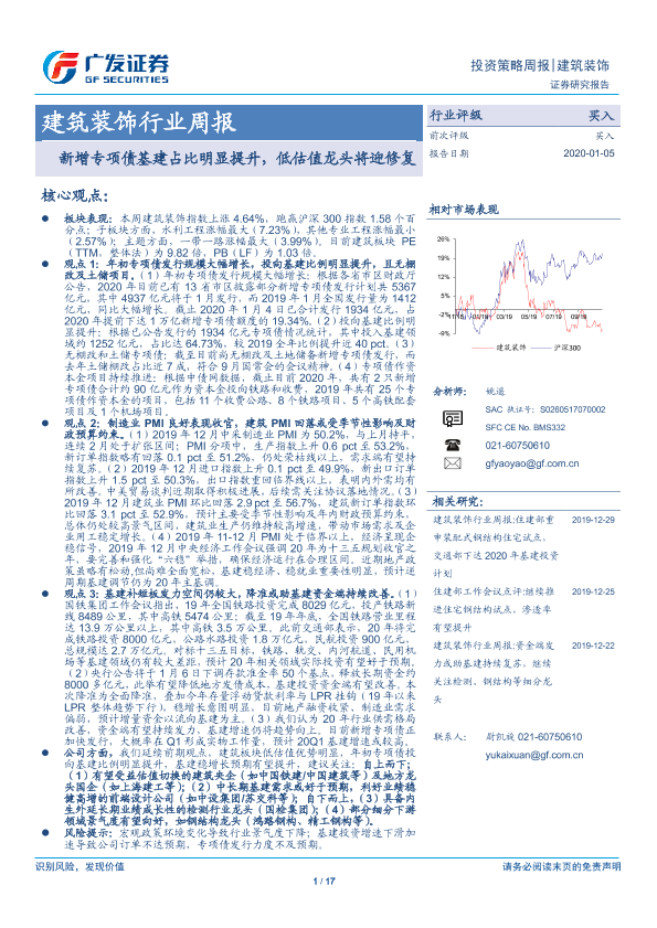【广发证券】【20200105】建筑装饰行业周报:新增专项债基建占比明显提升,低估值龙头将迎修复-17页
