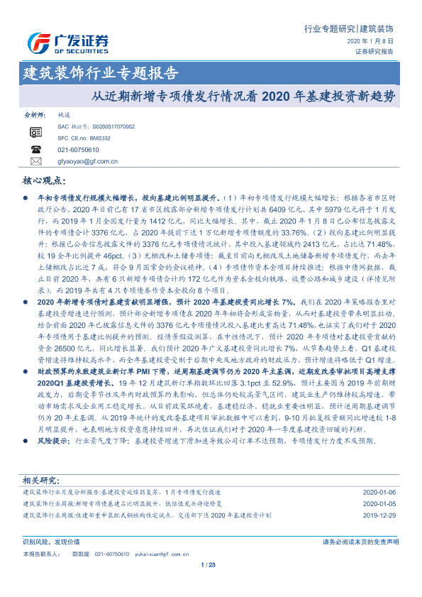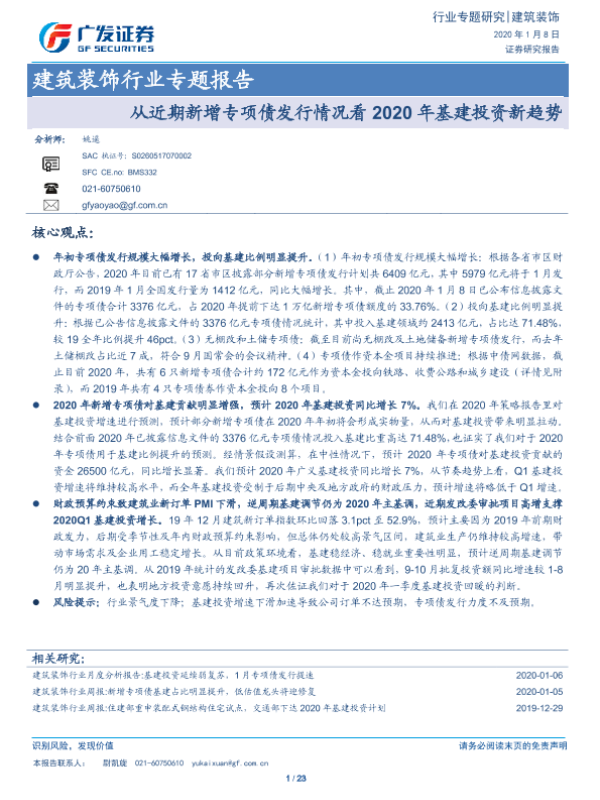 【广发证券】【20200108】从近期新增专项债发行情况看2020年基建投资新趋势-23页