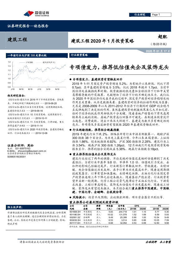 【国信证券】【20200117】建筑工程2020年1月投资策略:专项债发力,推荐低估值央企及装饰龙头-25页