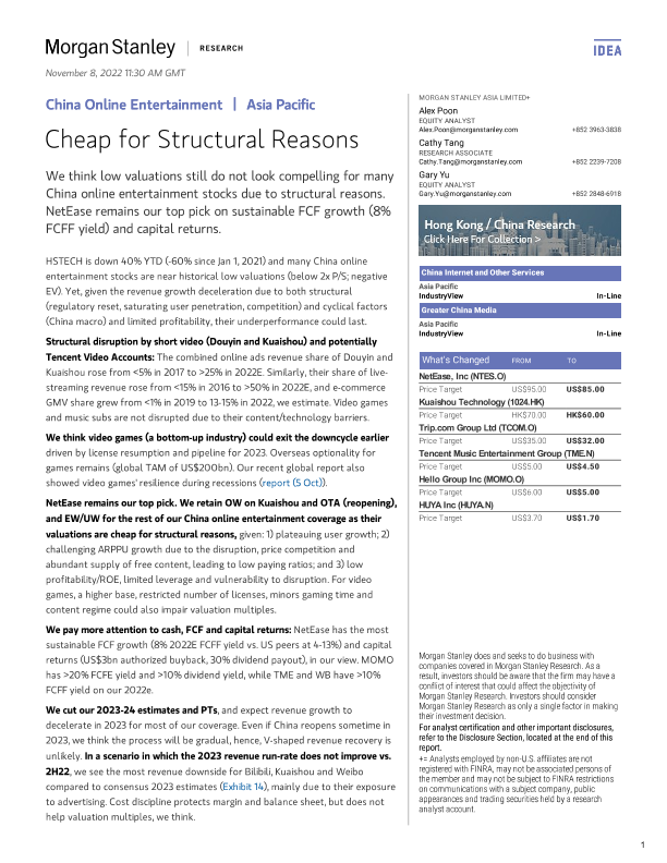 【Morgan Stanley】【20221108】中国在线娱乐因结构性原因便宜-Morgan Stanley-60页