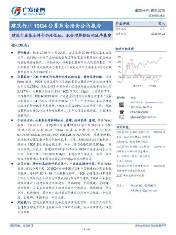 【广发证券】【20200123】建筑行业19Q4公募基金持仓分析报告-10页