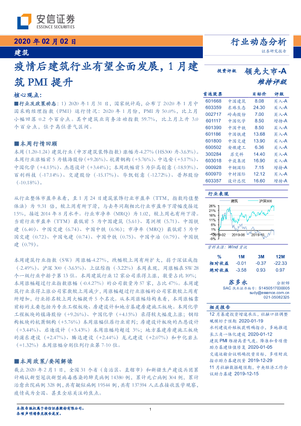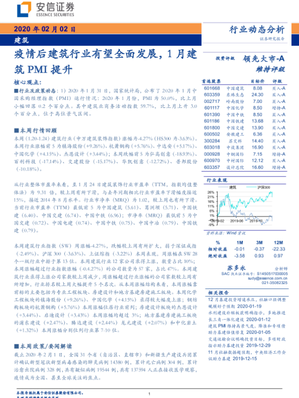 【安信证券】【20200202】疫情后建筑行业有望全面发展,1月建筑PMI提升-12页