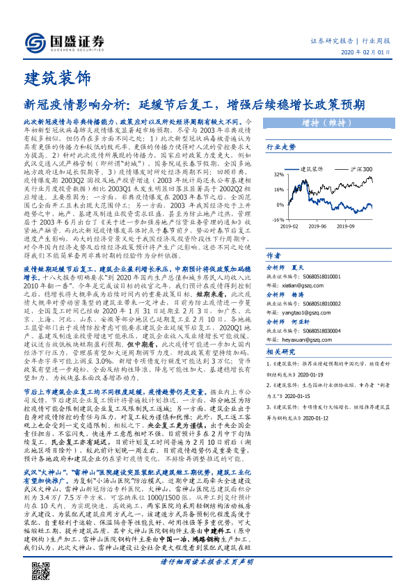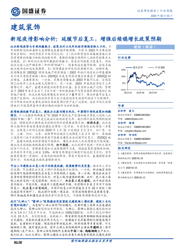 【国盛证券】【20200201】建筑装饰行业周报:新冠疫情影响分析-14页