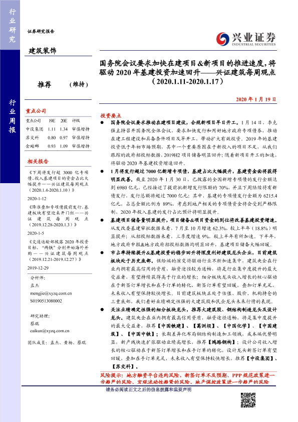 【兴业证券】【20200119】国务院会议要求加快在建项目&新项目的推进速度,将驱动2020年基建投资加速回升-28页