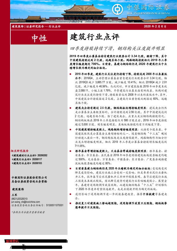 【中银证券】【20200206】建筑行业点评:四季度持股持续下滑,钢结构关注度提升明显-6页