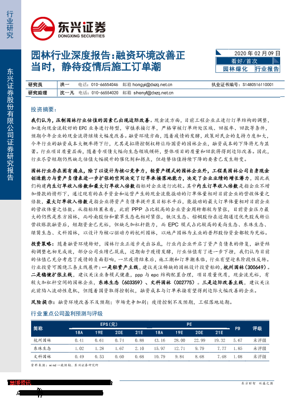 【东兴证券】【20200209】园林行业深度报告:融资环境改善正当时,静待疫情后施工订单潮-11页