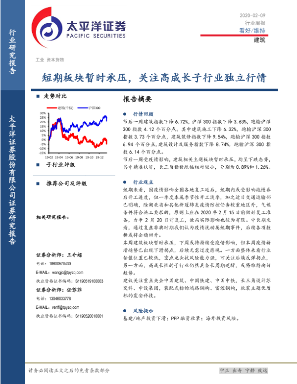 【太平洋证券】【20200209】建筑行业周报:短期板块暂时承压,关注高成长子行业独立行情-22页