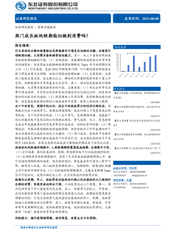 【东北证券】【20210808】策略专题报告:热门成长板块短期能切换到消费吗?-32页