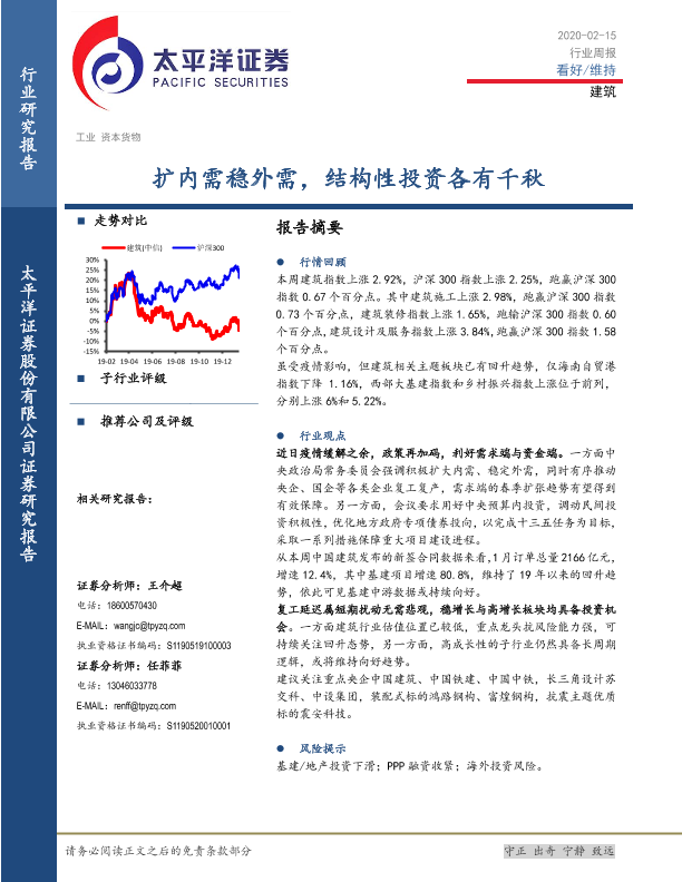 【太平洋证券】【20200215】建筑行业周报:扩内需稳外需,结构性投资各有千秋-22页
