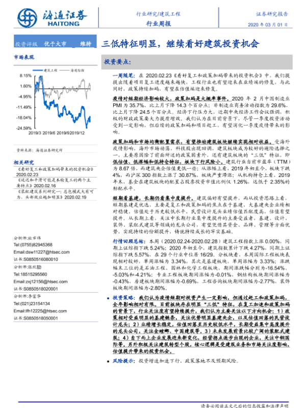 【海通证券】【20200301】建筑工程行业周报:三低特征明显,继续看好建筑投资机会-7页