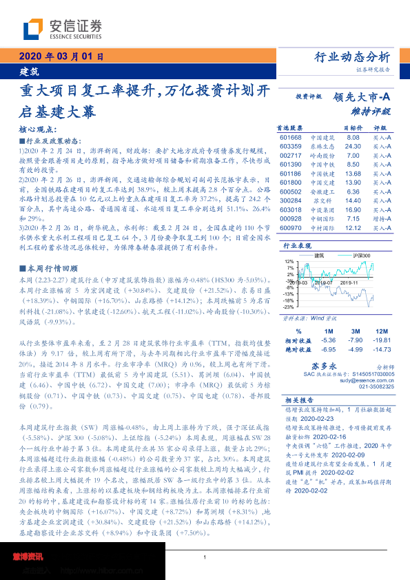 【安信证券】【20200301】建筑行业动态分析:重大项目复工率提升,万亿投资计划开启基建大幕-12页