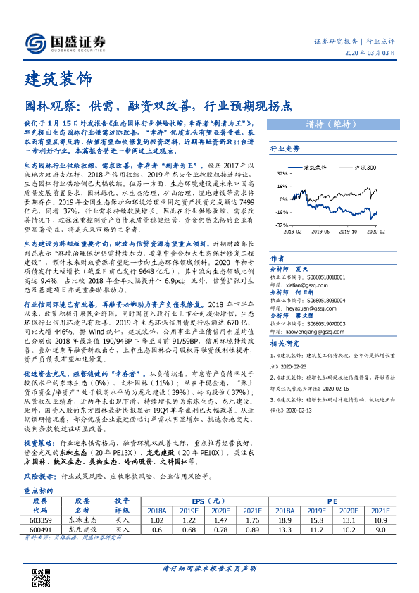 【国盛证券】【20200303】建筑装饰:园林观察:供需、融资双改善,行业预期现拐点-11页