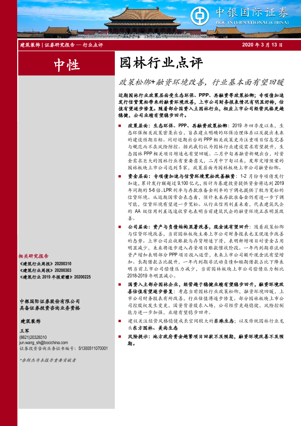 【中银证券】【20200313】园林行业点评:政策松绑+融资环境改善,行业基本面有望回暖-9页