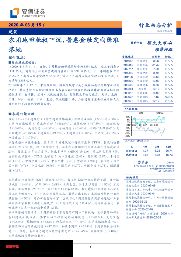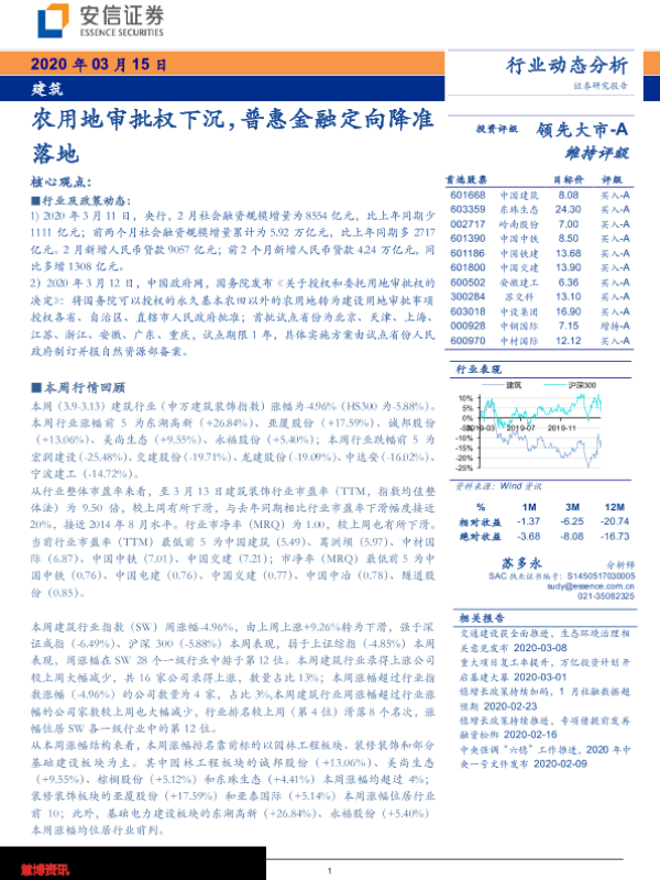 【安信证券】【20200315】建筑行业动态分析:农用地审批权下沉,普惠金融定向降准落地-11页