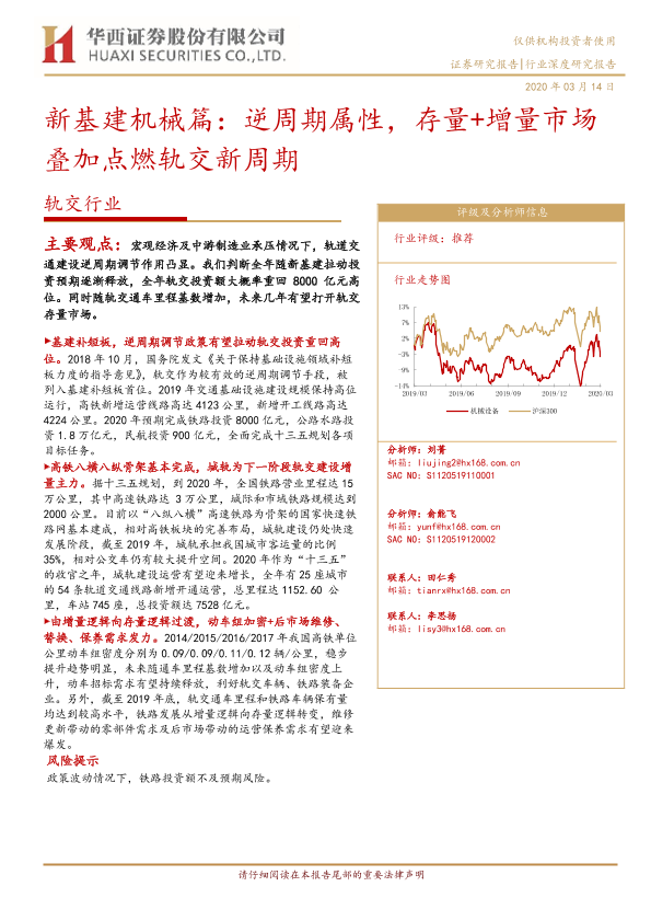 【华西证券】【20200314】轨交行业:新基建机械篇:逆周期属性,存量+增量市场叠加点燃轨交新周期-20页