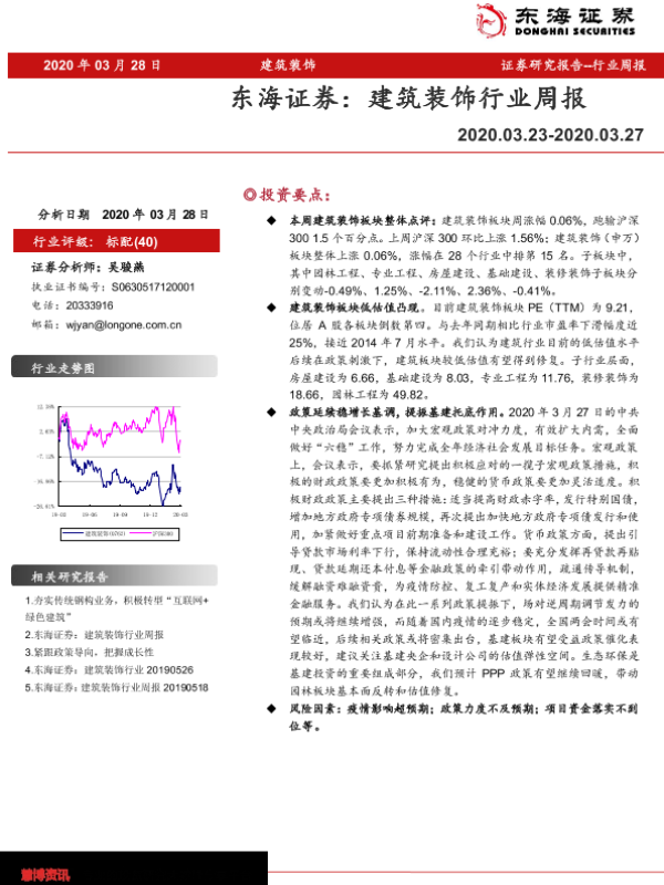 【东海证券】【20200328】建筑装饰行业周报-8页