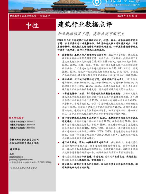 【中银证券】【20200317】建筑行业数据点评:行业数据明显下滑,实际表现可圈可点-6页