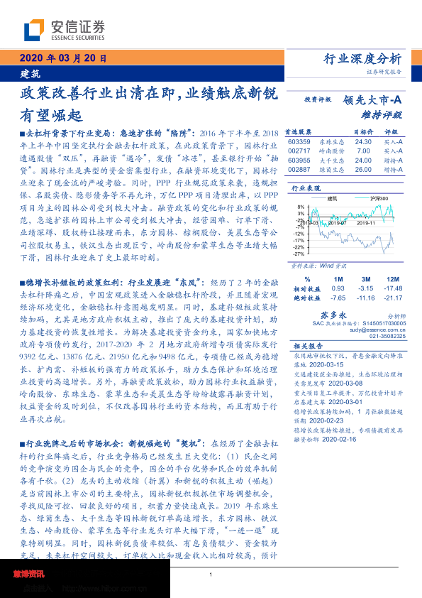 园林公司 建筑行业 政策分析 行业出清 金融去杠杆