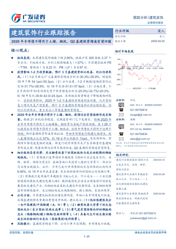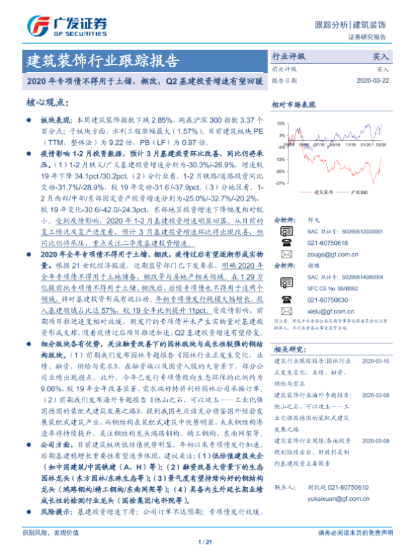 【广发证券】【20200322】2020年专项债不得用于土储、棚改,Q2基建投资增速有望回暖-21页