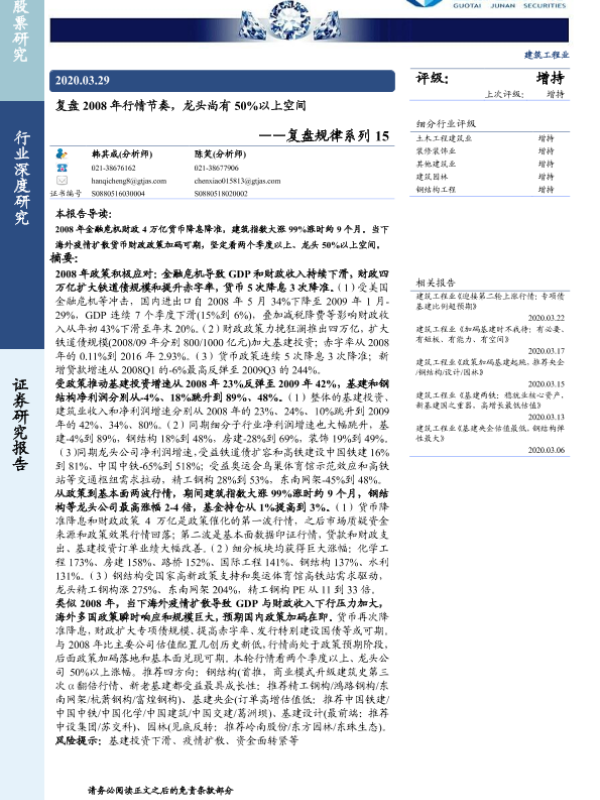 【国泰君安证券】【20200329】复盘2008年行情节奏,龙头尚有50%以上空间-31页