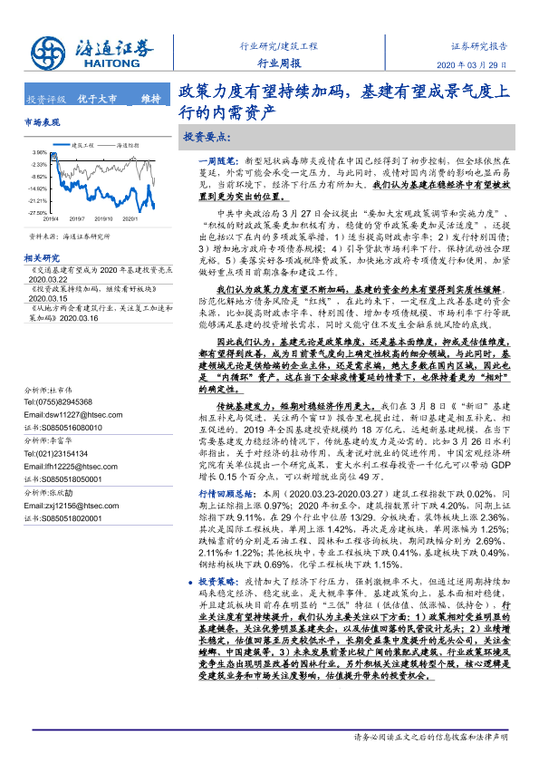 【海通证券】【20200329】建筑工程行业周报:政策力度有望持续加码,基建有望成景气度上行的内需资产-6页