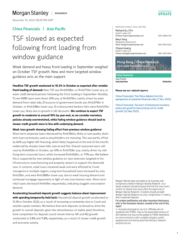 【Morgan Stanley】【20221110】China Financials TSF slowed as expected following front loading from window guidance-11页