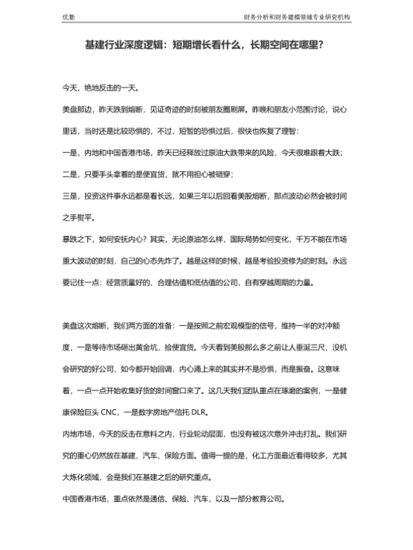 中国建筑 基建行业 短期增长 财务分析 长期空间