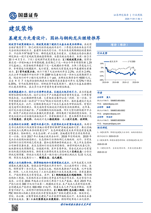 【国盛证券】【20200406】建筑装饰行业周报:基建发力先看设计,园林与钢构龙头继续推荐-18页