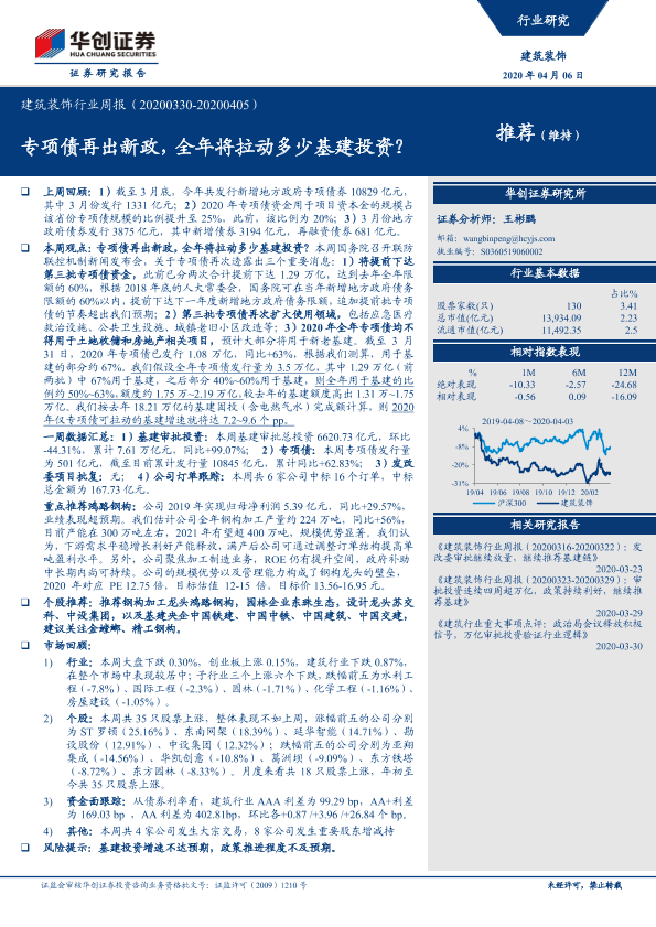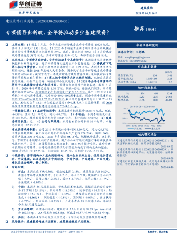 【华创证券】【20200406】建筑装饰行业周报:专项债再出新政,全年将拉动多少基建投资?-18页