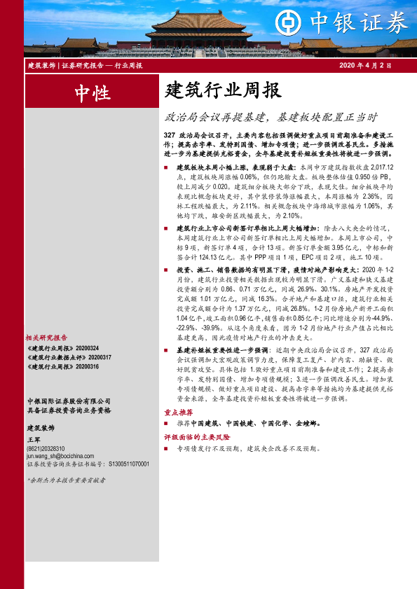 【中银证券】【20200402】建筑行业周报:政治局会议再提基建,基建板块配置正当时-14页