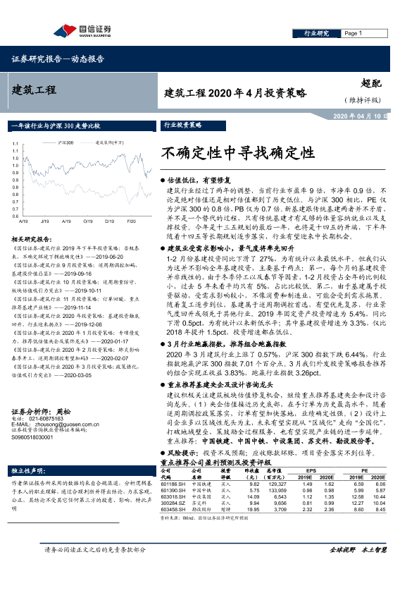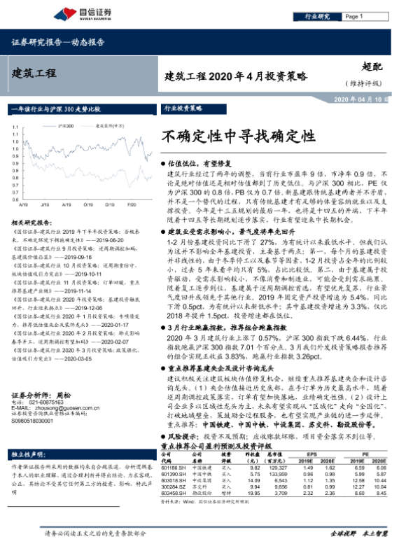 【国信证券】【20200410】建筑工程2020年4月投资策略:不确定性中寻找确定性-20页