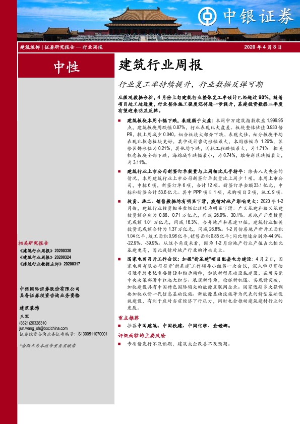 【中银证券】【20200408】建筑行业周报:行业复工率持续提升,行业数据反弹可期-14页