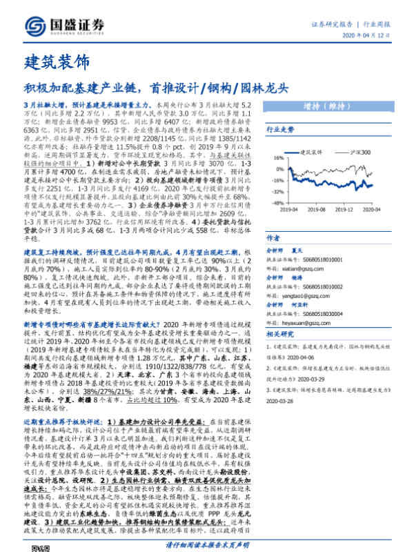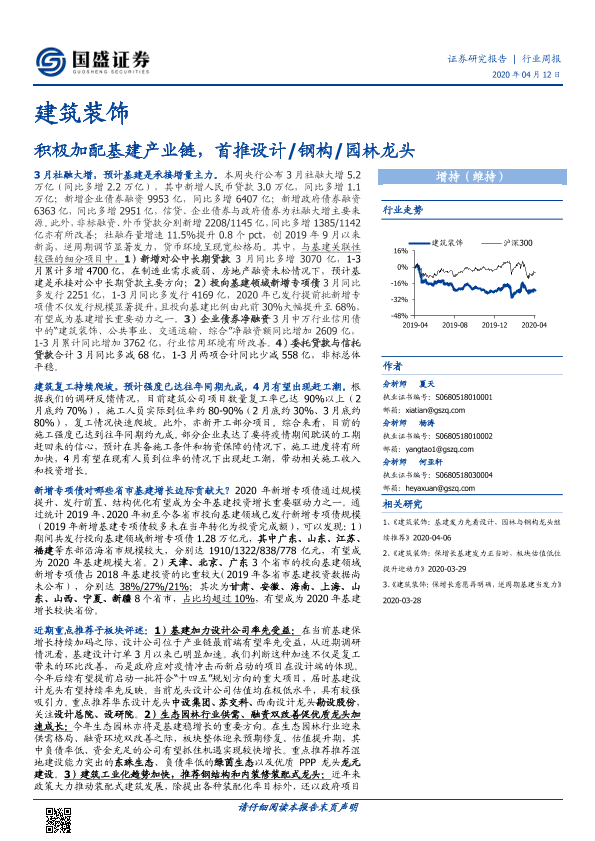 【国盛证券】【20200412】建筑装饰行业周报:积极加配基建产业链,首推设计钢构园林龙头-14页