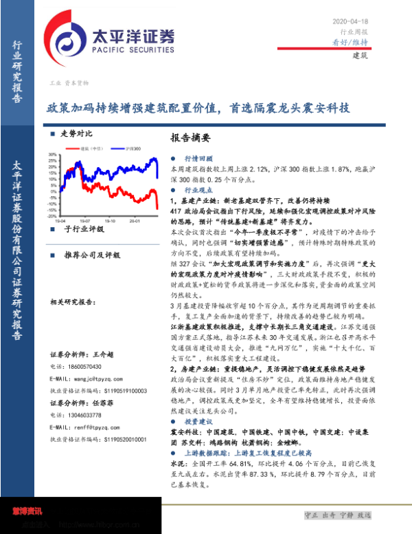 【太平洋证券】【20200418】建筑行业周报:政策加码持续增强建筑配置价值,首选隔震龙头震安科技-41页