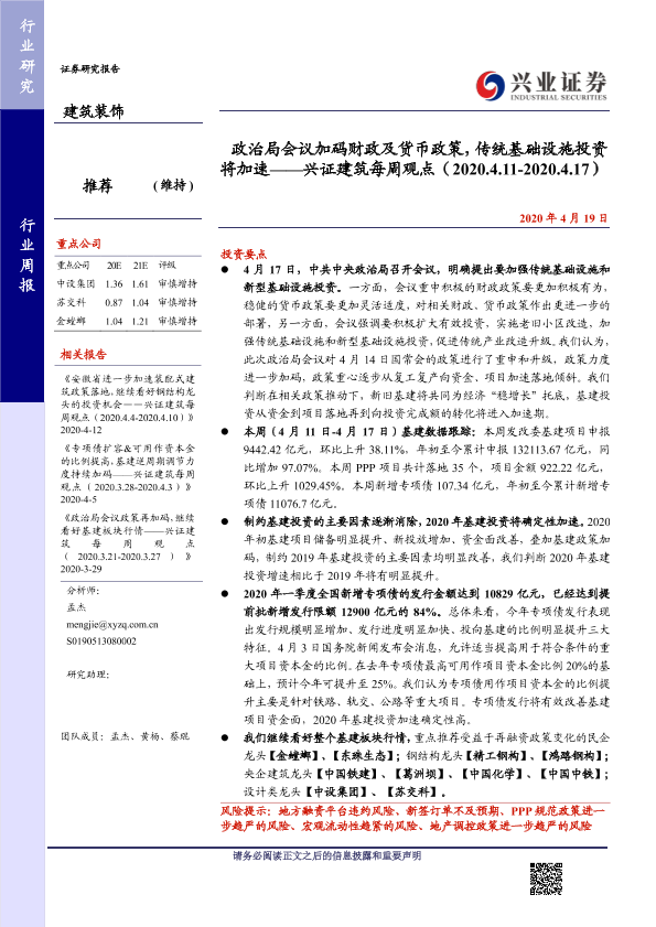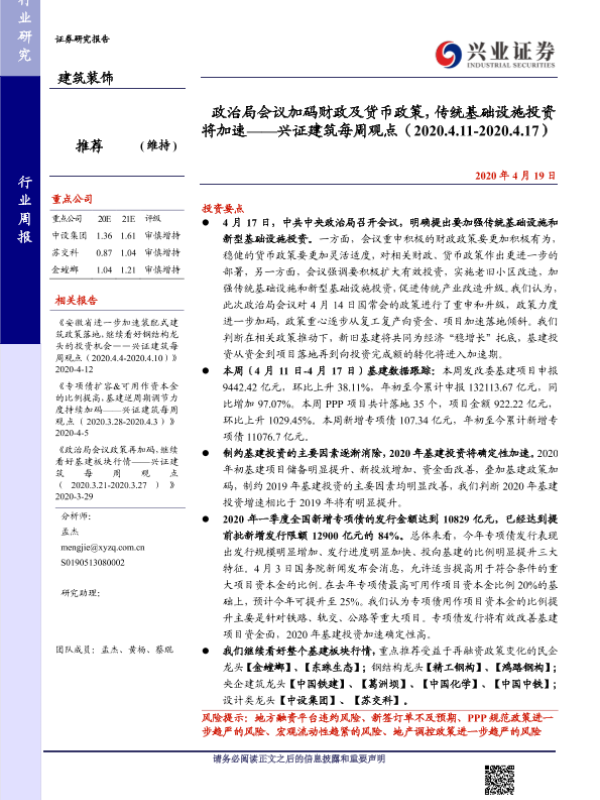【兴业证券】【20200419】政治局会议加码财政及货币政策,传统基础设施投资将加速-33页