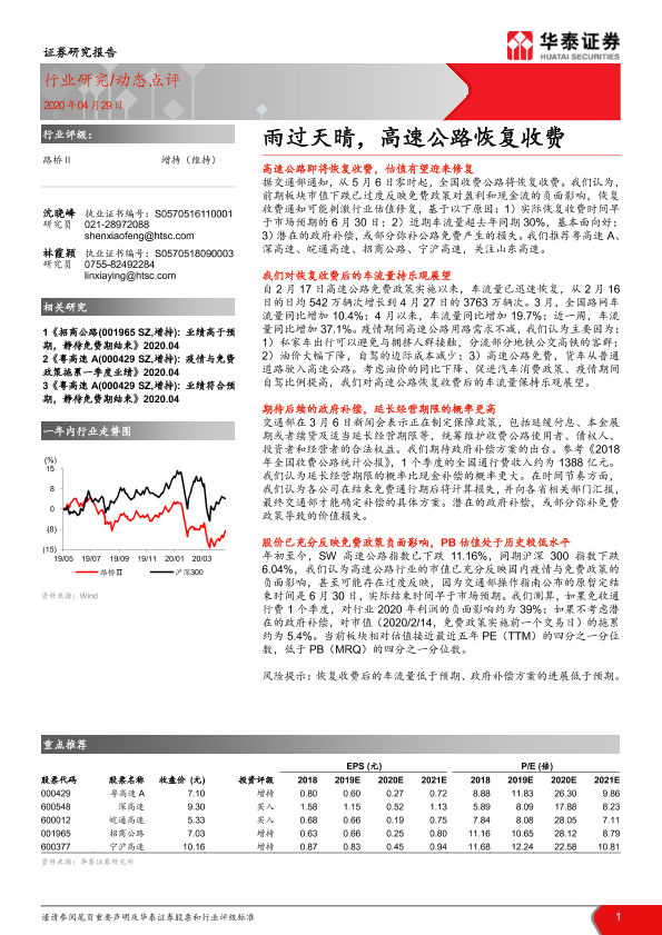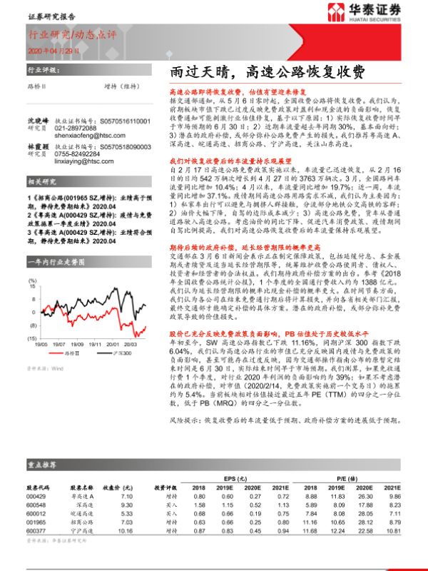 【华泰证券】【20200429】路桥动态点评:雨过天晴,高速公路恢复收费-3页
