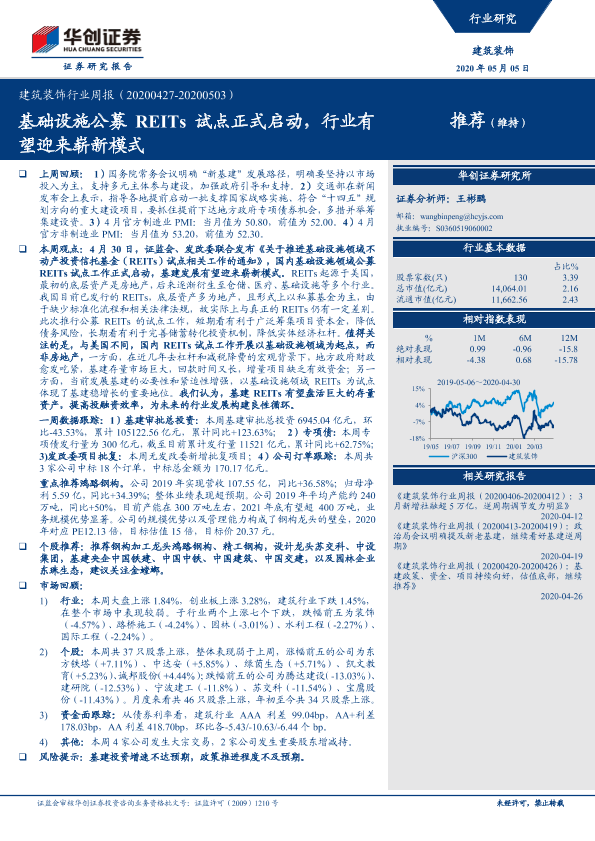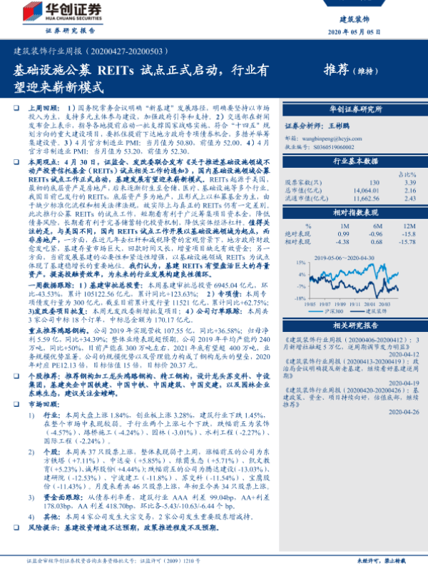 【华创证券】【20200505】建筑装饰行业周报:基础设施公募REITs试点正式启动,行业有望迎来崭新模式-25页