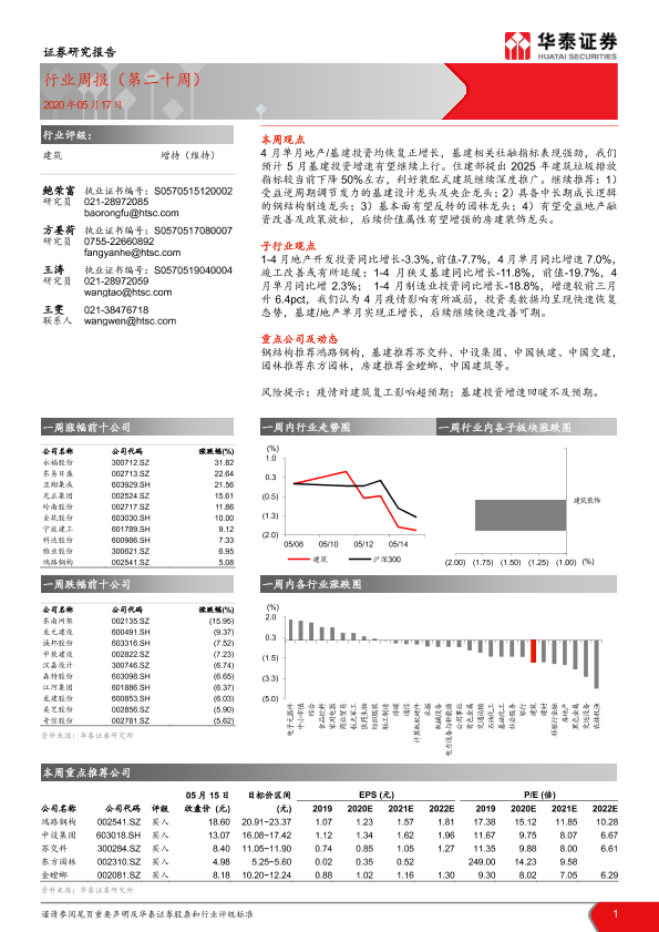 【华泰证券】【20200517】建筑行业周报(第二十周)-14页