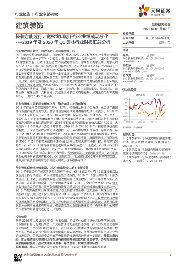 【天风证券】【20200507】2019年及2020年Q1园林行业财报汇总分析-20页